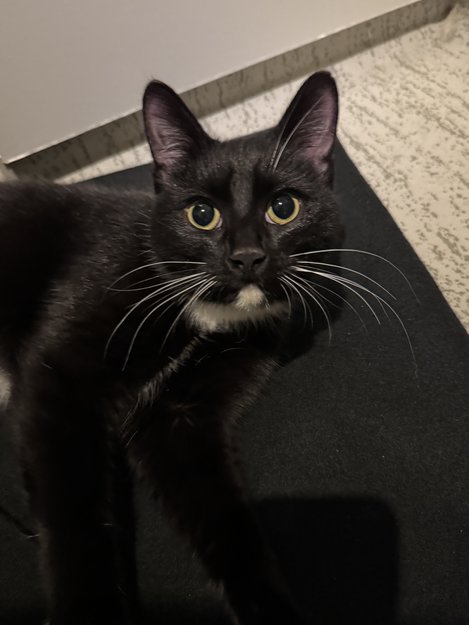 Kontaktsøkende ung hannkatt, ikke chip eller kastrert. Veldig sulten og tørst.
