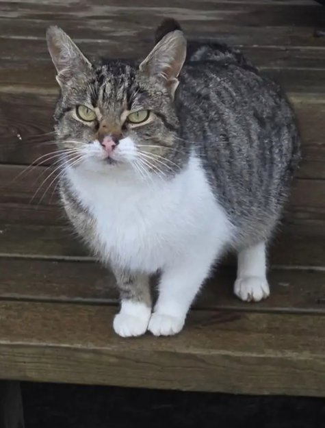 Ingen id-chip, vi vet ikke om hun er kastrert. Har et rift på øyelokket.