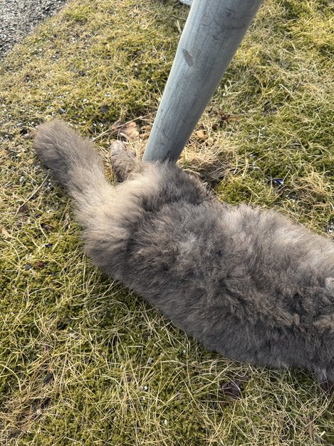 Katten ble funnet påkjørt midt i veien. Død på stedet. Ligger i en pose i veikanten.