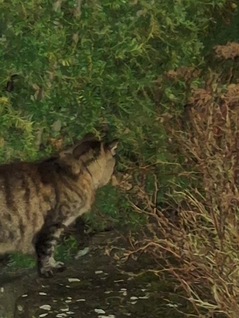 Kom hjem med toget. Så en katt gikk på den smale veien atmed togstasjonen. Han/hun visste ikke helt hvor han/hun skulle ta veien. Til slutt dro katten over veien bortover mot noen boliger i retning mot Extra-butikken på Skogn.