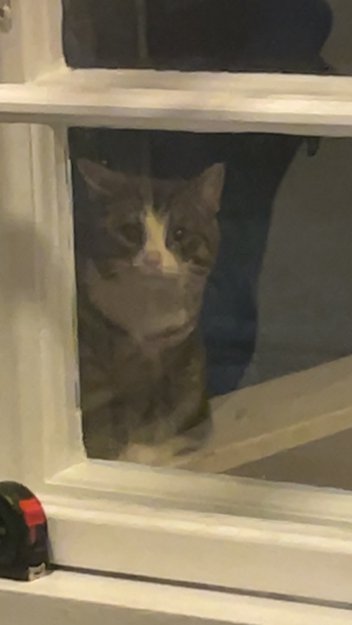 Sky å redd katt har holdt seg utenfor oss som mjauer sårt. Den virker sulten, men veldig redd. Håper noen eier denne, da den virker så fortvilet.