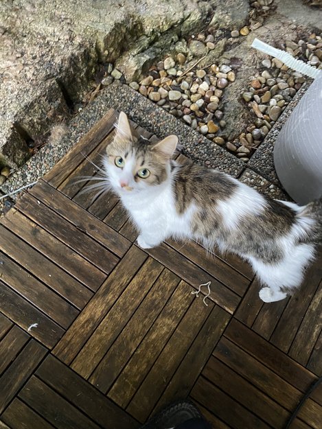 Vi har tatt den med til veterinær som har sjekket for chip og den er ikke chippet. Veterinær mener den er 4-5 mnd. gammel.