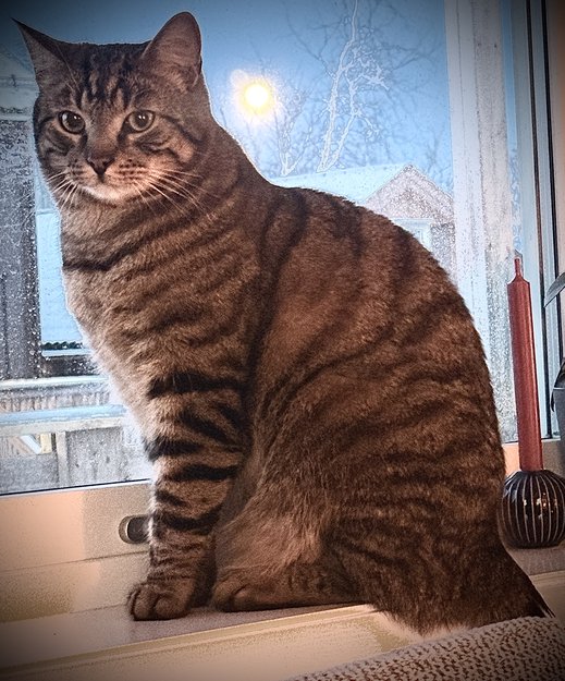 Katten er litt reservert, så ikke sikkert han oppsøker mennesker eller gir lyd fra seg til fremmede om han er innestengt.