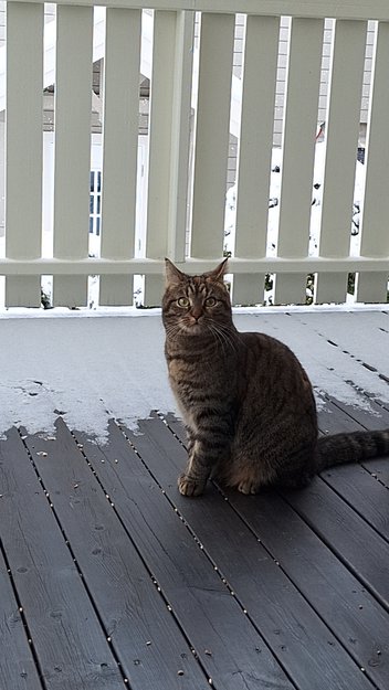 Orange liten flekk i panne. En hudfarget pote forann. Kastrert og id chippa. 1 1/2 år .