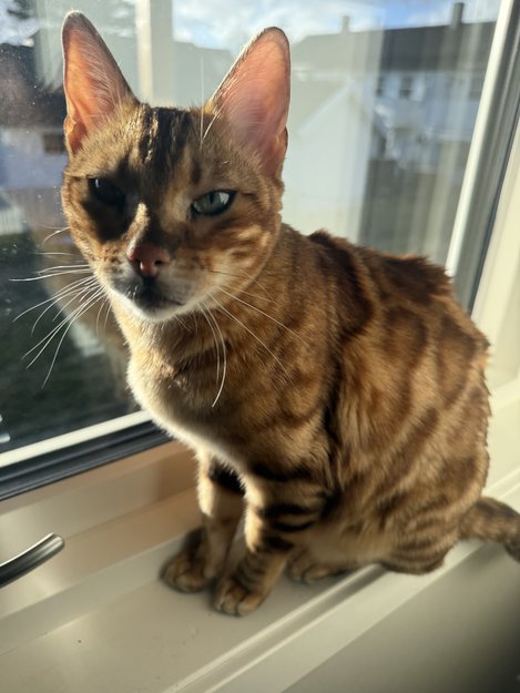 Bengalkatt, drøyt 2 år, tydelige mønster, sosial, veldig verbal