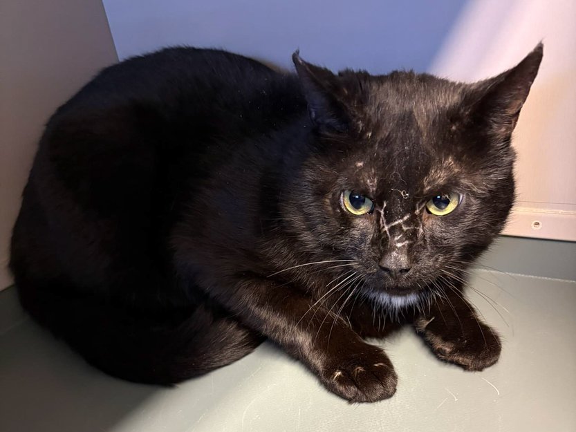 Katten er litt redd. Ved inntak hadde han mye sår og arr i ansiktet fra slåssing. Vi antar at han er ca. 2 år gammel.