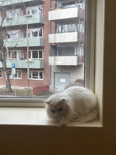 Jeg har funnet katten som nå er hos meg. Før jeg tok katten så prøvde jeg å tilby mat men var redd og ikke spiste men søsteren min kom med katte godis og katten spiste og vi fikk det inn i hus oss. Katten virket usikker og ikke spesielt kontaktsøkende, men ga lyd fra seg (mjauet). Vi lurte på om noen eier den hvis ikke så hadde vi lyst å beholde selv.