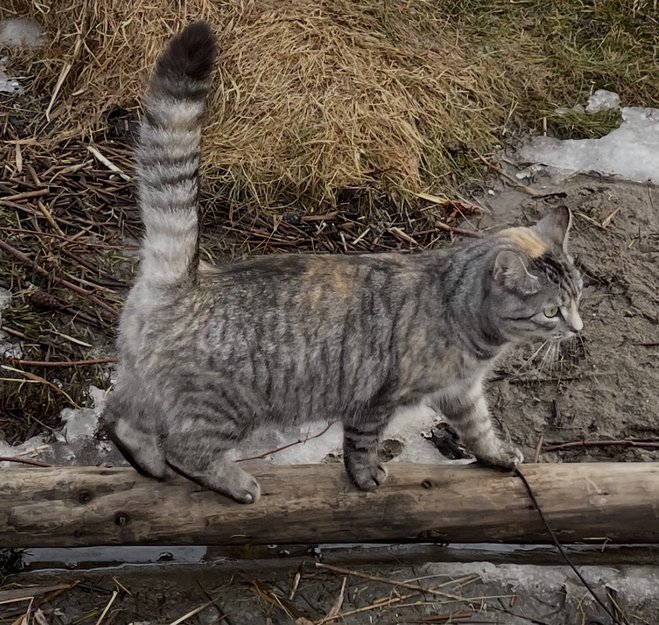 Katten vår Nanna har vært borte siden lørdag 4.april på formiddagen . Vi så henne sist ved Lækkert på Tunevannet. Det kan hende hun har søkt ly for uværet og befinner seg i en garasje eller lignende.