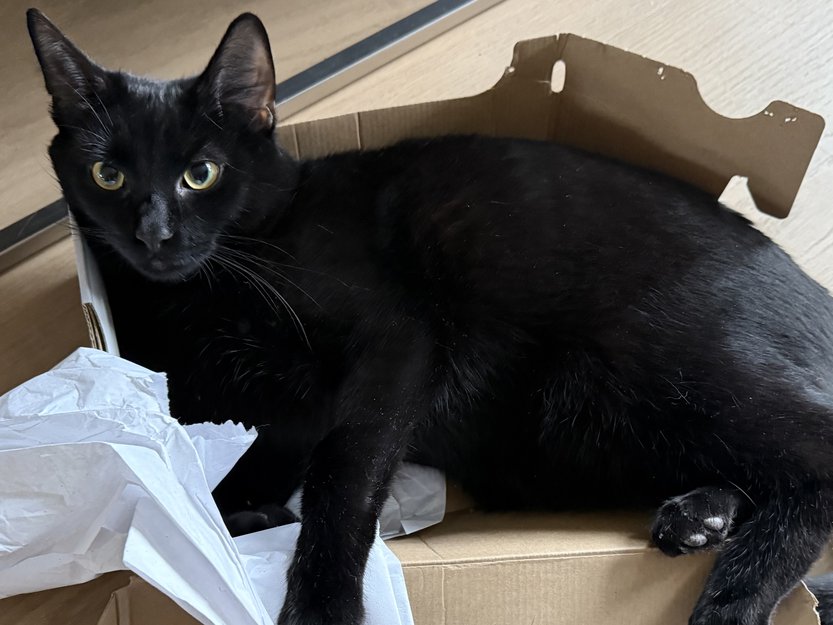 Nero har på seg en AirTag. Den fungerer dessverre ikke så godt på fjellet, men den kan enkelt skannes for å få opp kontaktinformasjon.