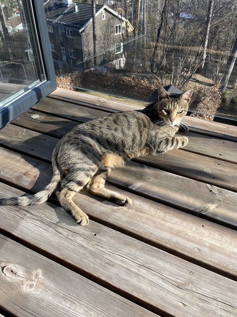 Katten kom tilbake hjem etter 3 døgn, tydelig stresset, men uskadet. Jeg tror at det kan muligens ha blitt innelåst i en garasje f.eks.