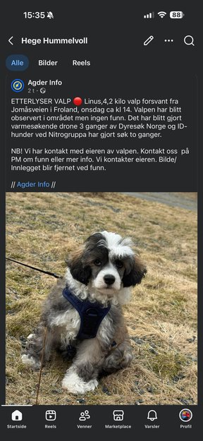 NB! Vi har kontakt med eieren av valpen. Kontakt oss på PM om funn eller mer info. Vi kontakter eieren. Bilde/ Innlegget blir fjernet ved funn.