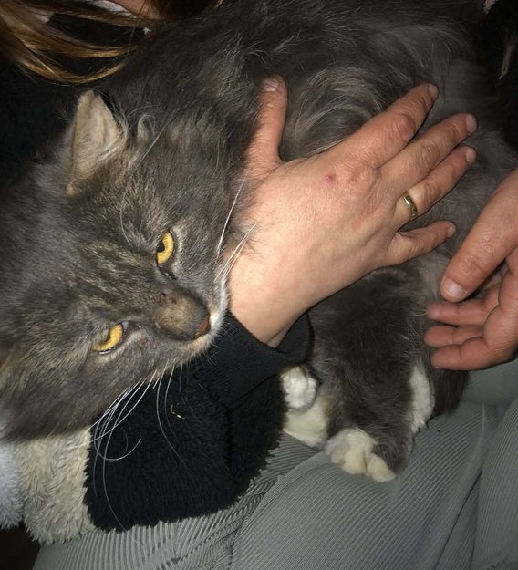 Katten har holdt til der en stund. Han har masse sår på kroppen, både gamle og nye. Har en del talter, vi har fått tatt av noen. Katten er håndterbar. Ta kontakt for flere bilder.