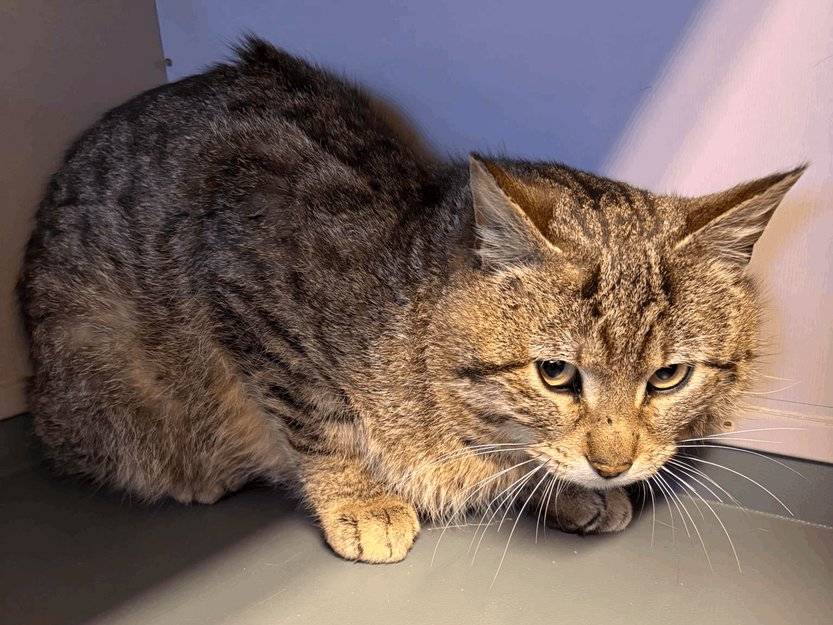Denne hannkatten kom inn til oss fra Sandvika på Frøya, hvor han hadde dukket opp på en matingstasjon som var satt opp for å fange en annen katt. Ingen i nabolaget hadde kjennskap til katten. Han er dessverre verken kastrert eller ID-merket.