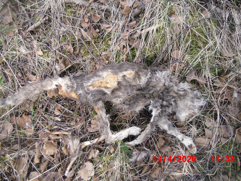 Katten kan ha litt rødt i pelsen også . Halen har striper . (Makrelltabby) Har ligget der en god stund . Fant ingen chip , men den kan ha blitt ødelagt . Katten ble først opptaket ca. 10-4