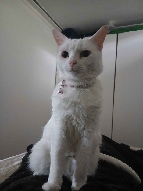 Hun er en helt hvit katt, og er av en veldig liten størrelse. Ser nesten ut som en kattunge. Hun har tynn pels på ørene, ser nesten rosa ut. Hun har et rosa halsbånd, men hvis denne har falt av, er pelsen hvor båndet var også veldig tynt og synlig. Har også en mørk flekk i høyre øyet. Øynene hennes er gule.