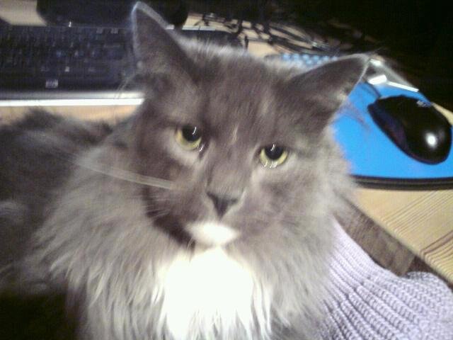Raphael var borte i fire-fem uker, men etter at jeg printet ut plakatene jeg fikk tilgang på her og hang dem opp på butikkene i området, så en fantastisk snill dame at dette var katten hun hadde tatt seg av et par uker allerede. Han hadde tasset syv kilometer avgårde. Det er godt at det finnes snille mennesker som bryr seg. Tusen takk til Sølvi i Løpsmarka!