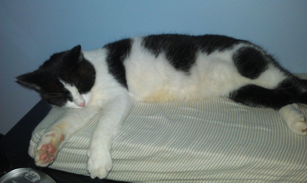 Svarte hode og ører, hvitt bliss over snuten. Hvit underside, store sorte partier på rygg. Rosa snute og tråputer.