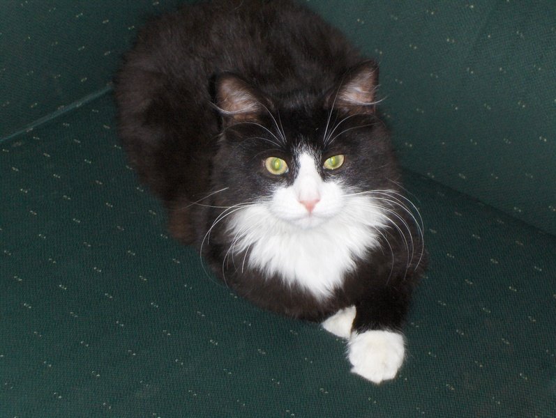 Stod plutselig på stuen hos oss fredag kveld. Meget kjælen, hoppet rett opp i fanget, la seg ned og malte. Prøvde flere ganger å sette ham ut, men kom tilbake. Kom opp i slosskamp med en voksen nabokatt og da bestemte vi oss for å ta ham inn en liten stund. Regner med han ikke har gått langt, han var ren og pen da han kom, samt i godt hold. Meget kjælen og stueren. Håper noen kjenner ham igjen snarest, slik at han får komme hjem.