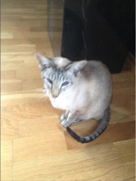 Katten stakk ut av døren da vi fikk besøk, 19:00 den 27.10.12. Hun er en Siameser, og er ikke en ute katt.