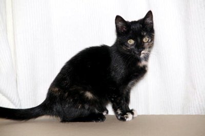 Korthåret skilpadde farget (sort med brune innslag) hunnkattunge, ca 4-5 mnd
