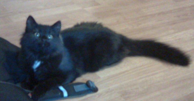 Gule øyne, lodden, silkemyk, flat ansikt. Kan muligens ha persergener, Ingen tatoveringer, tydeligvis innekatt, husren, veldig godlynt. Har også svarte værhår.