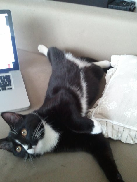 Snetik hadde vært borte i 10 dager. Han er egentlig innekatt, men han var vant med å være ute i bånd, og littegrann uten bånd. Det som skjedde var at vi slapp han ut rett utenfor døra vår der han fikk gå bittelitt for seg selv (rett ved døra), men så sprang han opp i skauen! Vi tenkte at han sikkert kom tilbake selv, men vi så ingen spor av han etter det...vi så etter han hver dag, gikk rundt i området, hang opp plakater, men dagene gikk og vi fikk ikke inn noen tips. Etterhvert fikk vi hjelp av FOD (Foreningen for omplassering av dyr) til å sette ut en felle, siden vi da hadde drevet og lagt ut mat som ble spist opp hver dag, så vi hadde mistanke om at det var katten vår.. Men han gikk aldri inn i fella. Til slutt så var vi borte i noen timer, før vi gikk satt vi verken ut felle, eller mat utenfor døra. Når vi kom hjem så hørte vi rasling i buskene utenfor huset...vi begynte å kalle og kisse på han, og rett som det var hørte vi sur og lei mjauing i buskene. Vi fortsatte å kalle, ristet med matboksen, og til slutt kom katten ut av buskene! Han var utmagra og skitten, og hadde noen småsår, men ellers i god stand! Gjett om han var glad for å komme inn og få mat, drikke og varme! Nå befinner han seg for det meste i sofaen, sammen med oss. Om en liten stund, når han har fått tilbake kjøtt på beina, skal vi kastrere og id-merke han.
