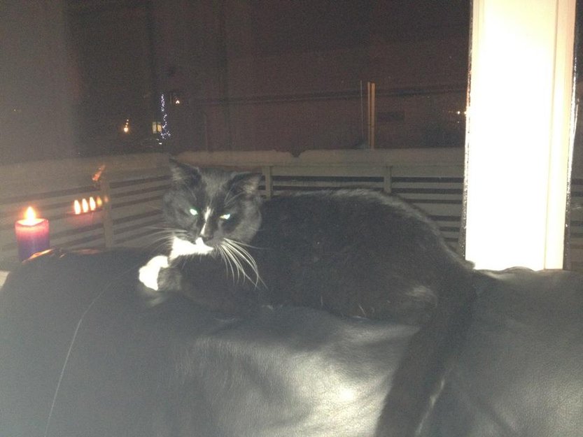 Rambo hadde gått inn til naboen, når han Holdt på og pakke bilen for juleferie. Og ble da innestenkt i en litn uke! Men han er i fin form, og super kosen! Og vi er overlykkelig over å få han hjem!! :-D lykkelig slutt!!:-D