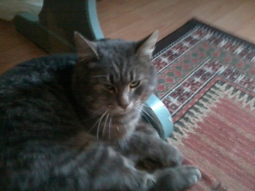 Katten våres har vært savnet siden lørdag, Han er grå med tiger striper samt litt god og rund. Den tilnærmer seg raskt mennesker da den er ekstremt glad i mat, men er litt sky før den blir kjent med deg. Den har ikke for vane å bli borte da den som regel vandrer rundt på tomta hele tiden når den er ute, den mjauer når han ser oss.