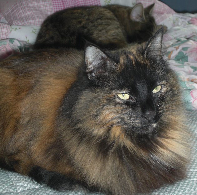 En ekstremt sulten og tynn, men ellers tilsynelatende helt fin, Smulekatt kom hjem av seg selv i kveld, etter to uker borte! Glede i heimen!