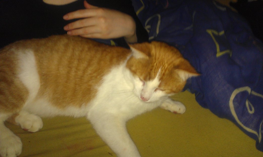 Han er en kastrert huskatt som er veldig rolig blandt mennesker, han har noen små arr etter en annen katt klorte han over nesen og noen litt mørkere oransje striper i pelsen.