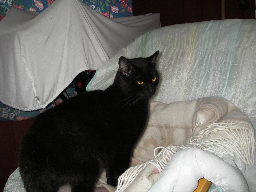 Dukket opp her ca 2.jan 2013 Den er litt sky, men kjælen. Den følger etter våre katter og
