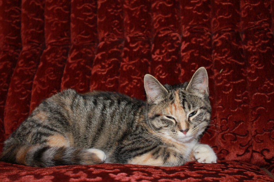 Kattungen var utenfor huset på morgenkvisten og hadde ikke funnet veien hjem i løpet av dagen.Katten fikk husly og mat hos oss på kvelden.