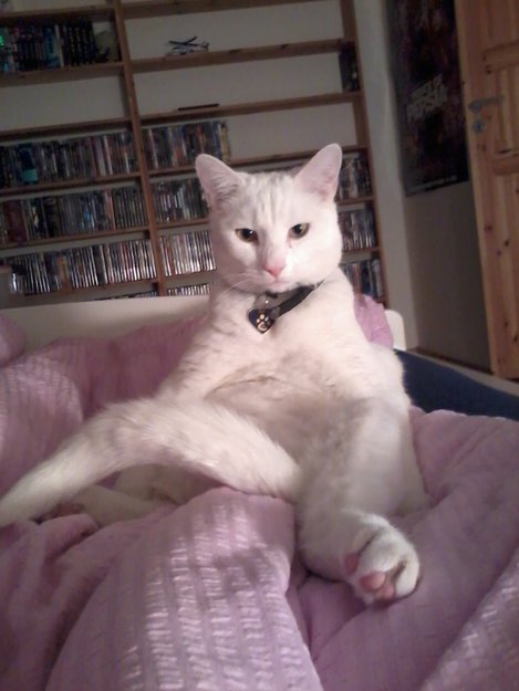 Han eier nesten 6 kg, så er en kraftig gutt. Hadde et svart halsbånd med gravert brikke da han forsvant.