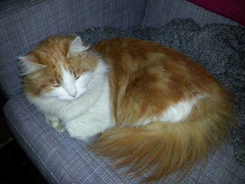 Er skipskatt så har noen ekstra tær på hver fot. Hvit og rød i pelsen.