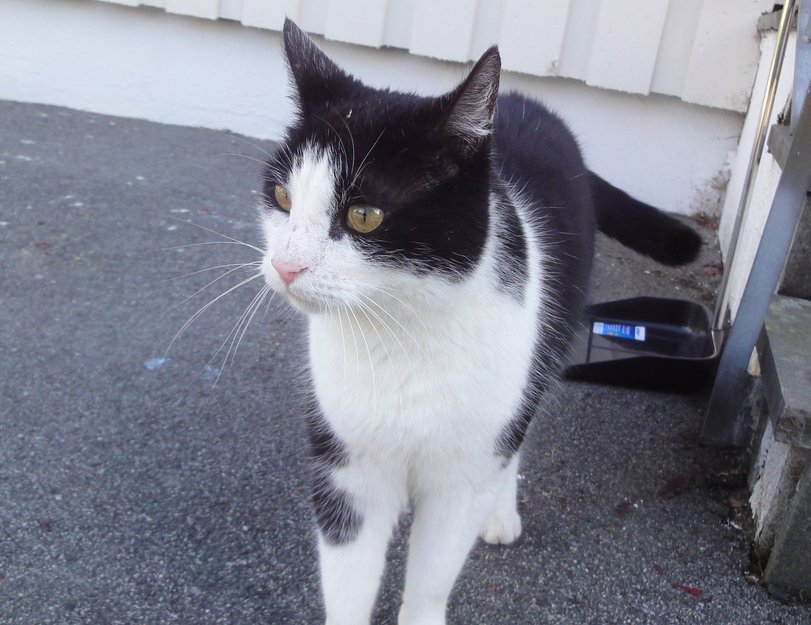 Katten min pleier alltid å vente på meg når jeg kommer hjem fra jobb. Men i går kom han aldri. Har vært å lett å ropt uten å finne han. Han er en sort og hvit mons som reagerer på navnet Laban. Savner han enormt. Hjelp meg å finne han.