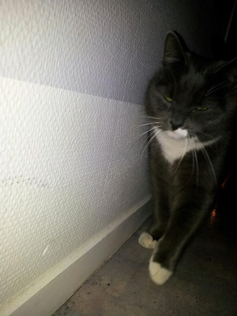 katten er observert i området ved NHH. er veldig kontaktsøkende og vennlig.