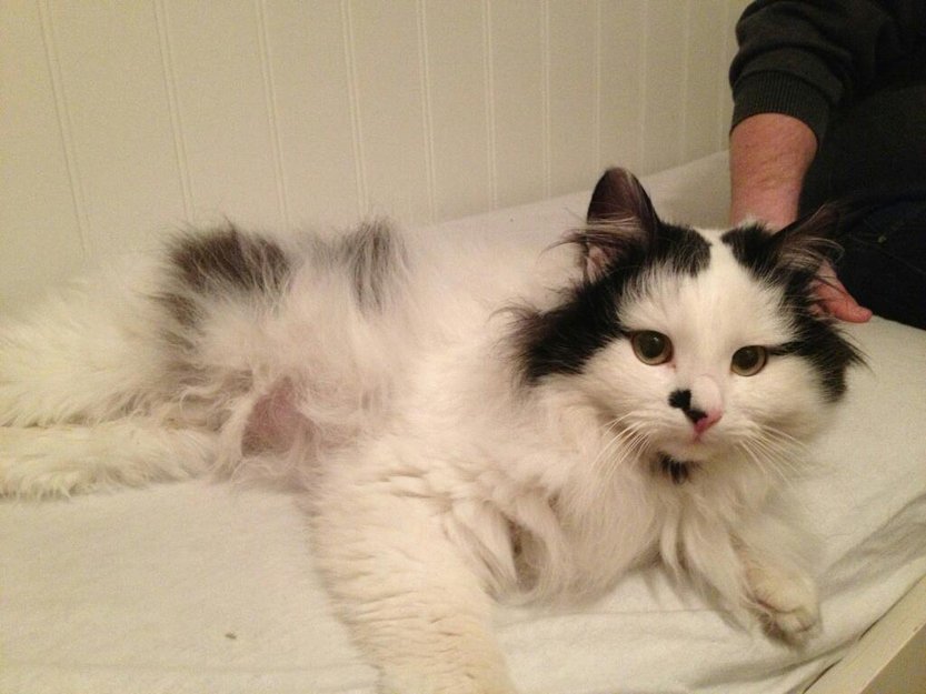 Hvit med noe svart, katt ble funnet i Løten