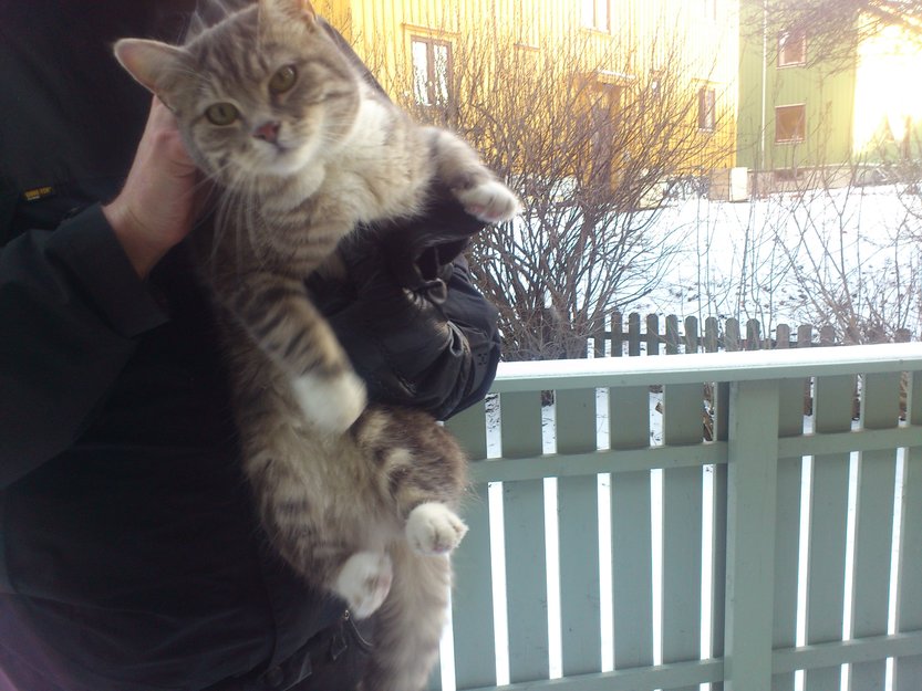 Katten kom mjauende til hagen, og ønsker ikke og forlate terrassen vår.
