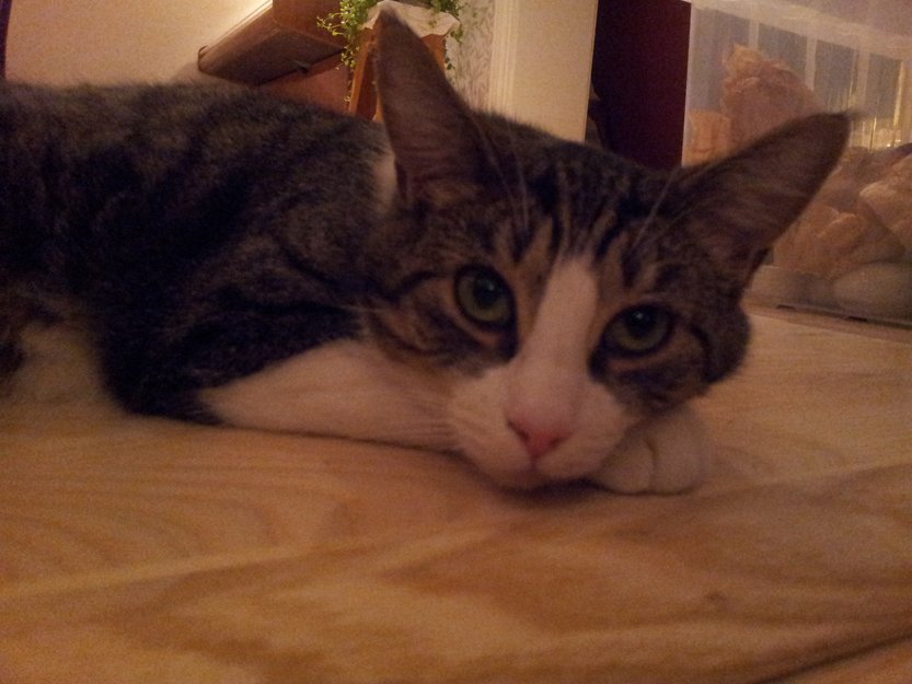 Vi fikk katta fra F.O.D i begynnelse av januar. før hun ble tatt inn av F.O.D har hun vært ute omkring Dronning Maud skol i Trondheim, og vi frykter hun har beveget seg retning Trondheim.