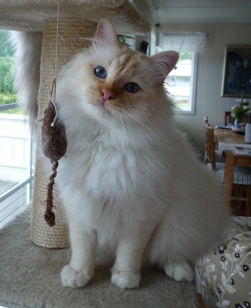 Bosse er nylig fylt 2 år og han er av rasen Hellig Birma. Han er rødmasket, stor (5,1 kg) og veldig tillitsfull. Bosse er chipmerket og på dyreidentitet.no er han oppført med navnet Albert som er hans oppdrettsnavn.