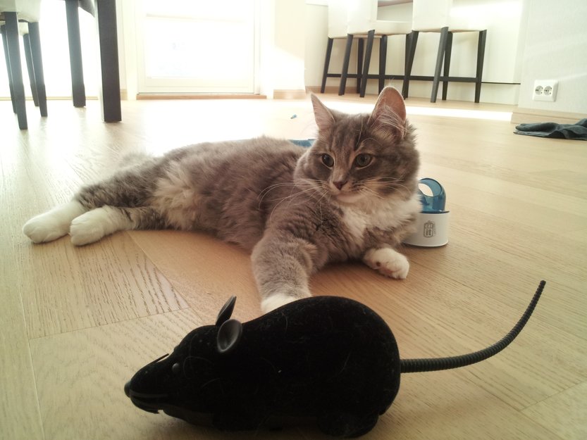 Lodden grå pels med hvite sokker og hvitt under halsen. Hun er liten av størrelse. Litt sjenert men veldig glad i mennesker. Pleier å mjaue når hun vil ut/inn dører. Veldig leken på kveldstid, og kosen på morgenen.