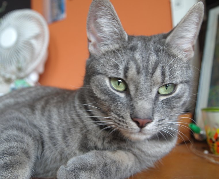 Slank, ung kastrert hannkatt. Grønne øyne og rødlig snute. Hadde på seg et gult halsbånd med diamanter da han forsvant.
