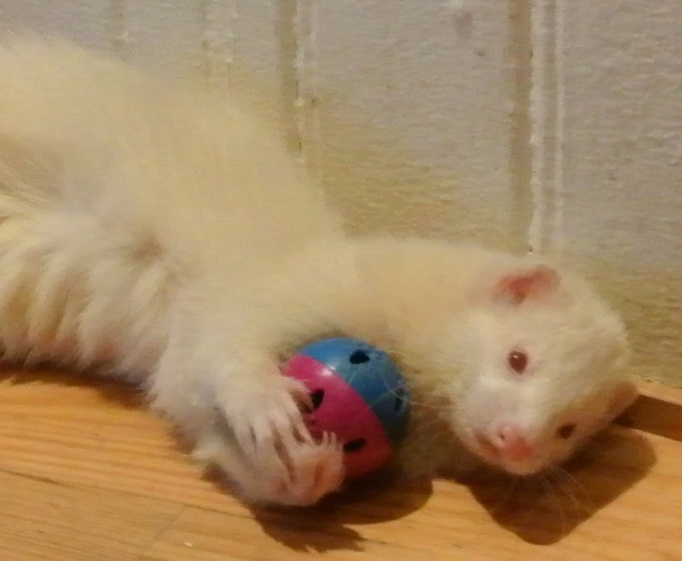 En albino ilder som lyder navnet Wicche. Rosa nese, rød øyer. Slank, og veldig tøff jente. Kan nippe, men biter ikke. Ene øvre hjørnetanna er litt kortere enn den andre.