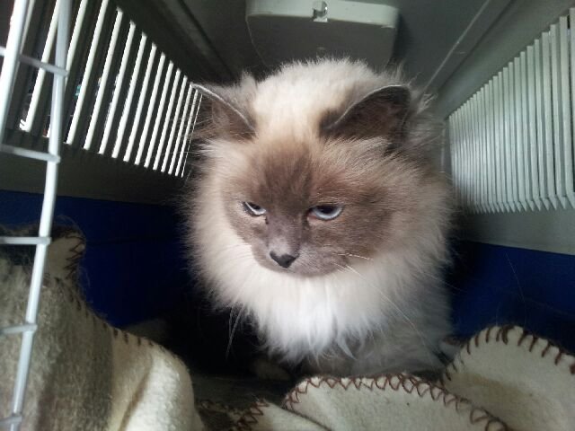 Da dette er en rasekatt som kanskje ikke er vant til å ferdes ute på egen hånd, så har jeg tatt vare på den.