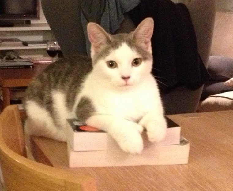 Paris er en 8 måneder gammel. Han er hvit med store gråstripete felter. Han har en svart flekk ytterst på snuten, og grå flekker på undersiden av labbene. Paris er en skipskatt, dvs. at han har en ekstra tå på forlabbene. Labbene ser derfor ekstra store ut.