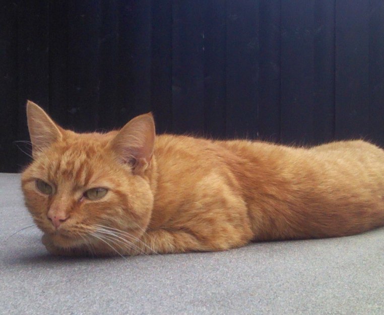 En kontaktsøkende 3 år gammel katt. Er lang og tynn, og har mange små, sorte flekker på snuten. Han mangler halsbånd, men er id-chippet og har bokstavene ID tatovert i øret. Når han ikke finner veien hjem setter han seg som regel på trappen hos noen koselige folk og venter på å bli hentet.