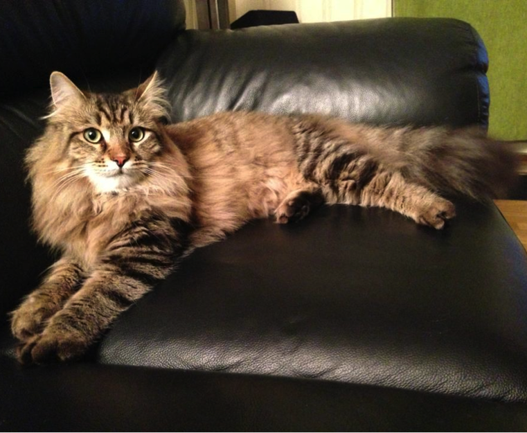 Stor bruntigret, langhåret hannkatt forsvunnet fra Varden i Fyllingsdalen. Han er 1 år gammel, har sort halsbånd med ID brikke, men dette kan han ha mistet. Han er hvit rundt øynene og munnen, og er ellers brun med mørkere striper. Er øremerket og ID-chippet. Kastrert.