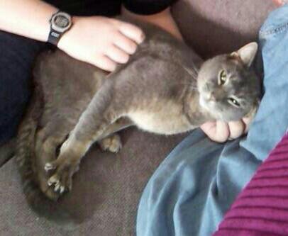 Pusen er hovedsakelig grå med lysebrun mage. Veldig langbent. Antydning til striper i pelsen, mest synlig på magen. Et lite hakk på nesen. Utrolig kosete