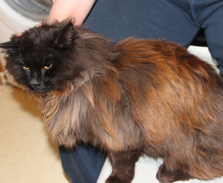 Ble funnet i en garasje for et par dager siden. Den ville ikke gå derfra, og ingen i nærheten har sett katten før. Er nå tatt inn av Dyrebeskyttelsen Norge Hedmark Nord-Østerdal.