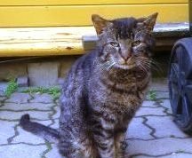Dette er en ukastrert hannkatt. Katten er tynn og pjuskete etter å ha gått ute i lengre tid. Den er litt sky til nye mennesker, men er tillitsfull til han som mater han.
